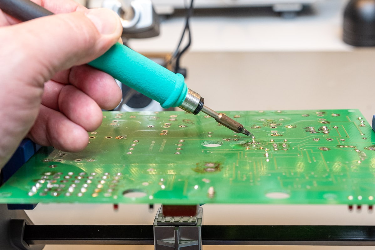 Die JBC CD-2 zeigt eindrucksvoll, was man eigentlich schön viel früher hätte nutzen sollen. Im Vergleich zu Stationen unterhalb von 200 €, erschließt sich eine völlig neue Welt. Was früher oft mühsam und nervig war, geht mit der JBC Lötstation spielend von der Hand. Selbst Standardaufgaben wie einfache THT-Lötstellen gehen schneller und sehen ordentlicher aus.
