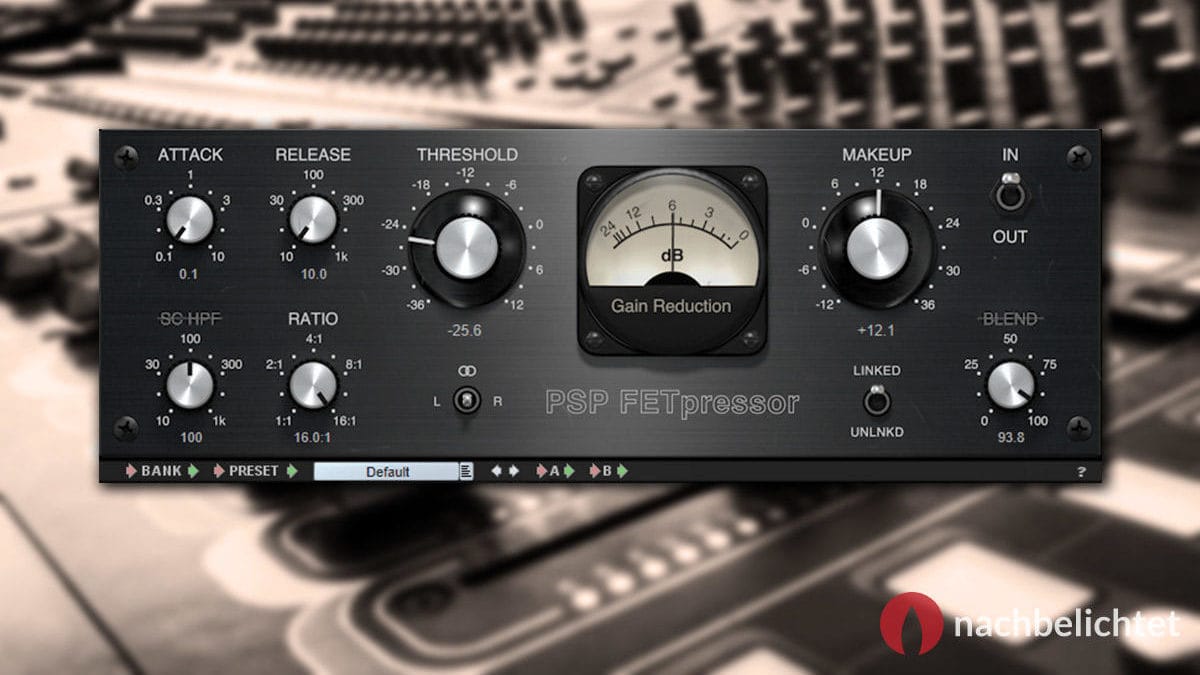 Der PSP FETpressor bietet die typische Charakteristik eines FET-Kompressors vom Schlage des Urei 1176. In meinem Test des Klark Teknik 76-KT konnte er eindrucksvoll unter Beweis stellen, dass er sehr nahe an vergleichbarer Hardware arbeitet. Er erzeugt sogar die typische Verzerrung, wenn man Attack- und Release auf die schnellsten Zeiten einstellt und die Ratio-Einstellung auf Rechtsanschlag.