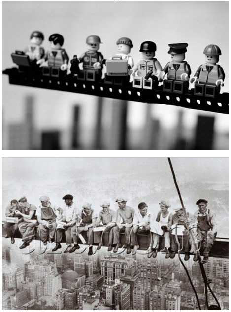 Reflections of life with LEGO bricks ist eine (meist) amüsante Umsetzung sehr bekannter Fotografien mit eben diesen LEGO Figuren.