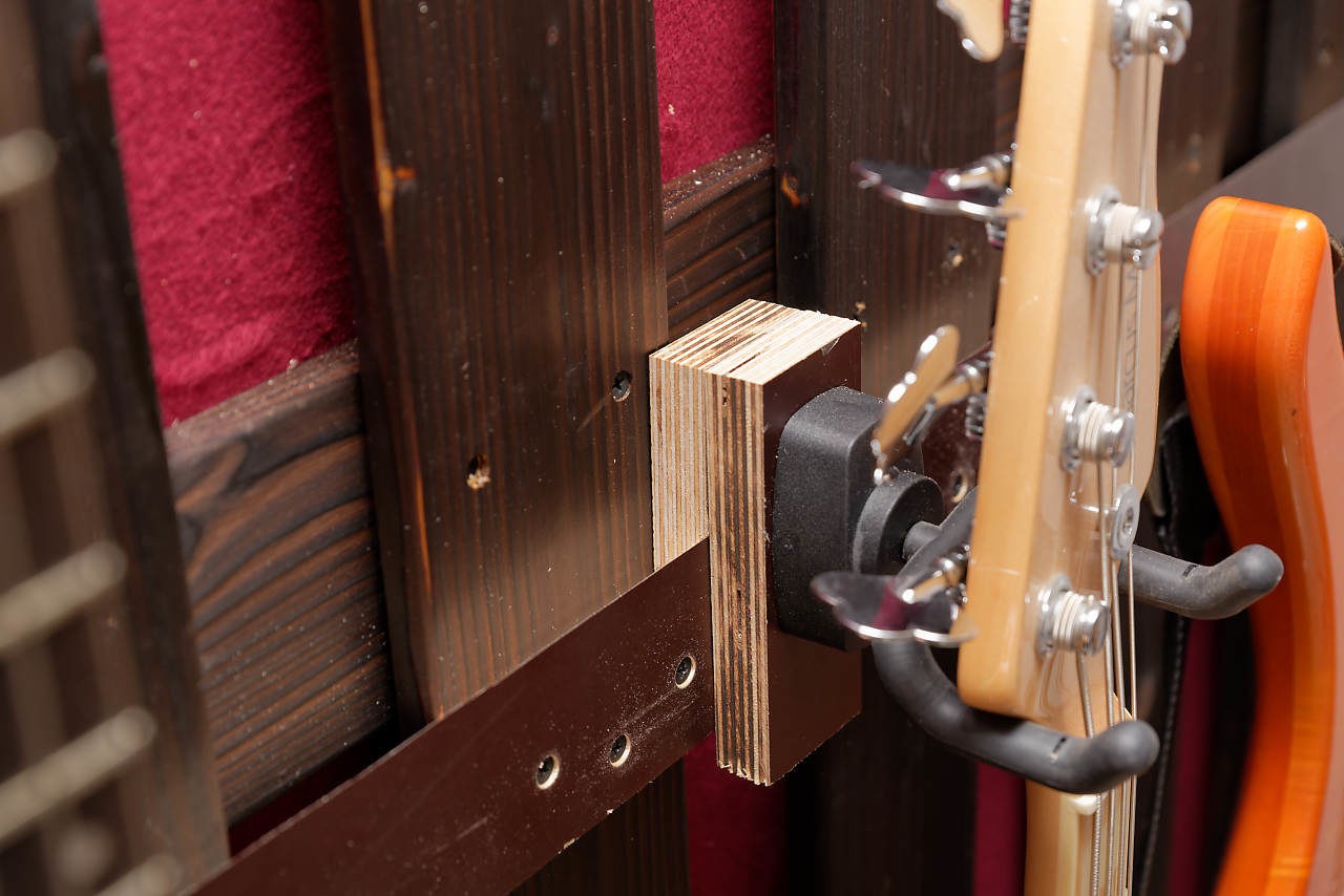 Shou Sugi Ban Gitarrenwand mit Absorber und French Cleat