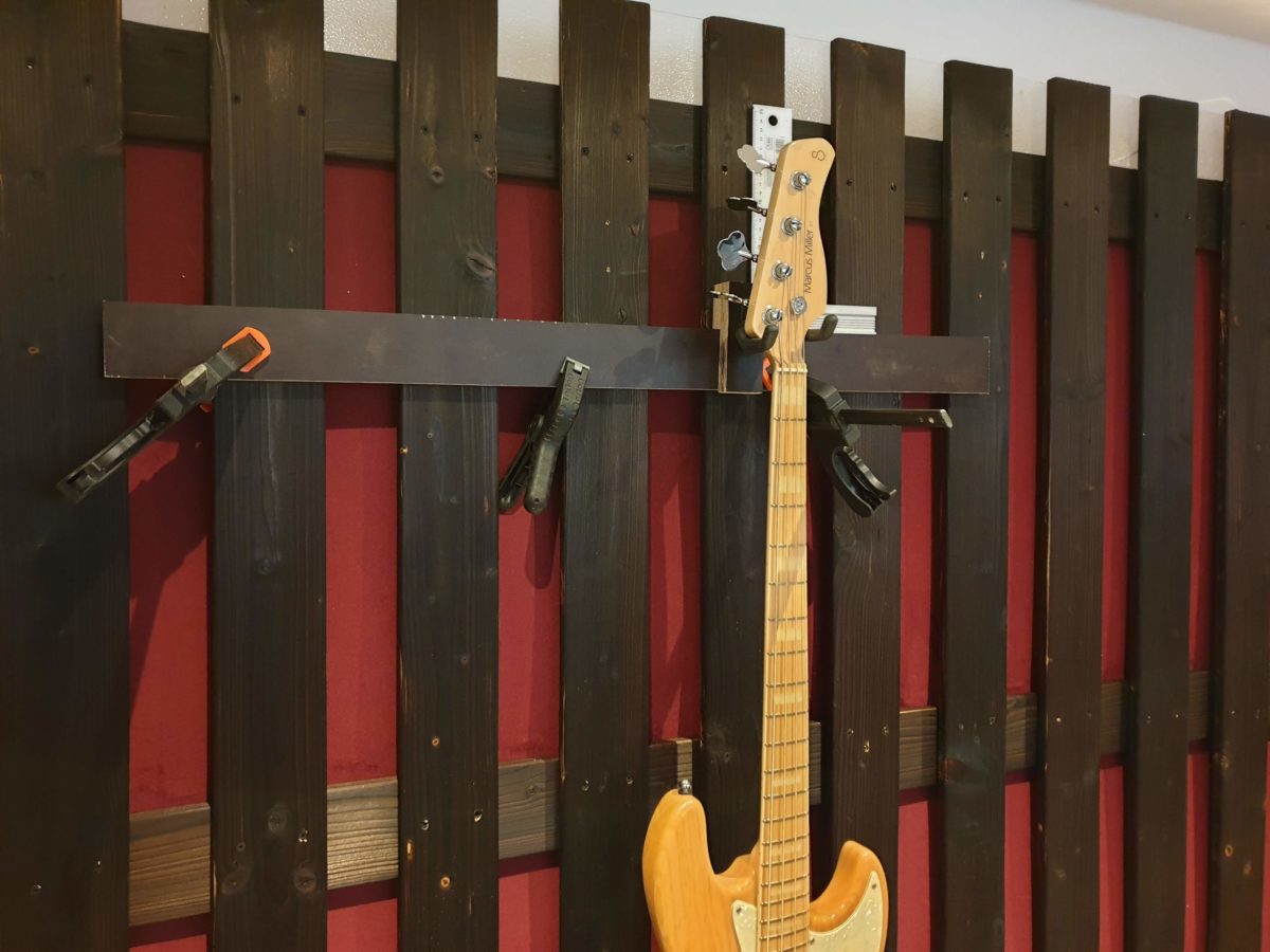 Das ist doch mal ein Titel! Für meine vielen Bässe und Gitarren wollte ich im neuen Studio eine schicke und praktische Gitarrenwand, die gleichzeitig ein Absorber ist. Das ist der Projektbericht.