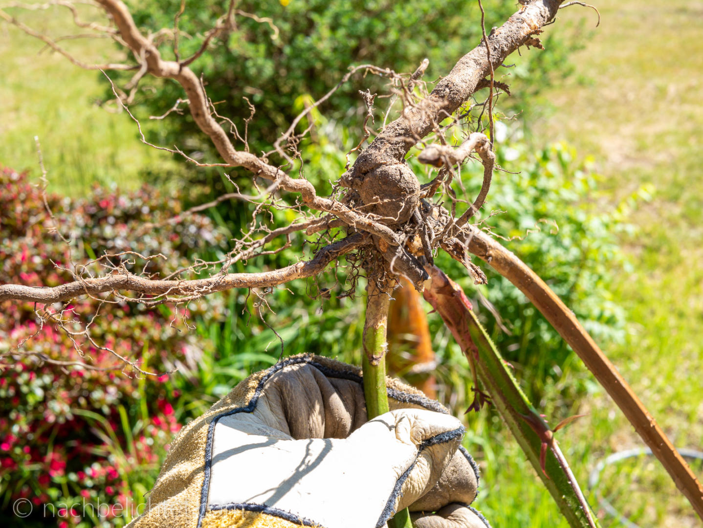 Die Wurzeln der Brombeere sind vergleichsweise kurz und lassen sich gut entfernen. Mit einer kleinen Gartenschere kann man die oft mehr als 3 Meter langen Gewächse in handlichere Stücke für den Gartenabfall schneiden.
