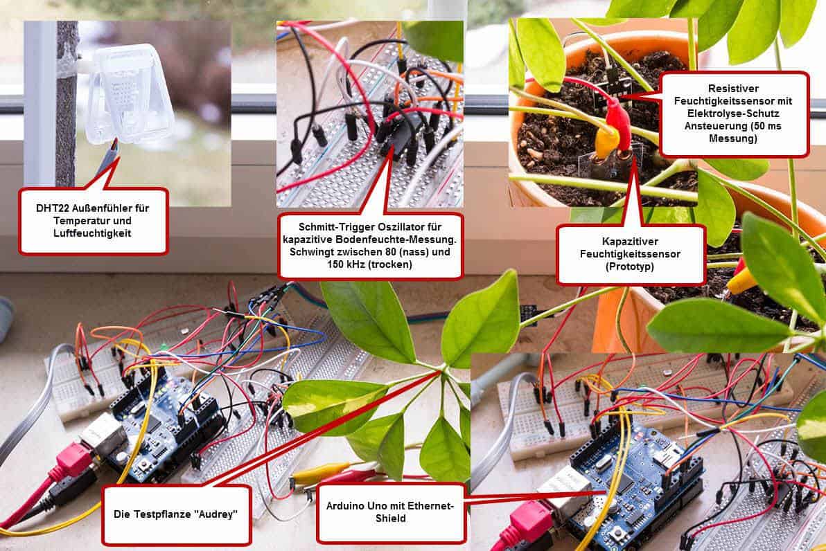 Besonders stolz bin ich auf meine selbst entwickelten Bodenfeuchte-Sensor, der kapazitiv (also ähnlich wie der Touchscreen eines Smartphones) arbeitet. Alles habe ich irgendwann schon mal gemacht, aber mit den neuen Möglichkeiten kommen alle meine Talente bei diesem Thema irgendwie zusammen.