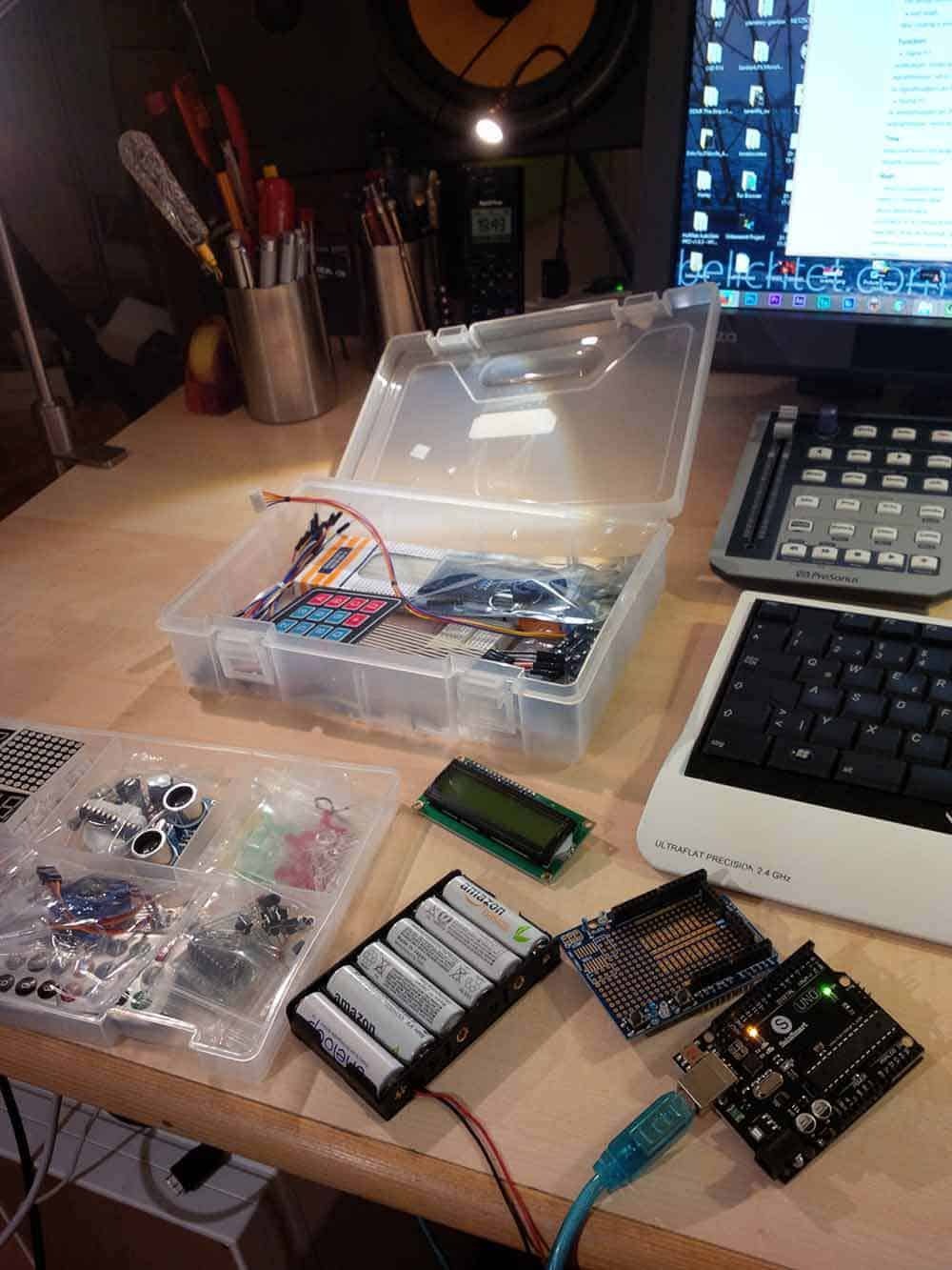 Die ganze Computer- und Softwaregeschichte ist eine tolle Sache, aber mir war seit langer Zeit schon wieder danach etwas „wahrhaftiges“ zu machen. Mal wieder richtig mit Hardware arbeiten und etwas schaffen, das nicht nur aus ein paar Zeilen Code besteht. Da ich ja einmal RF-Techniker gelernt habe und mich das Elektronikbasteln schon mit 7 oder 8 Jahren begeisterte, habe ich darauf wieder ein Auge geworfen. Begonnen hat es mit einem Adventskalender von Conrad Elektronik und der erfolgreichen Reparatur einiger recht anspruchsvoller Fehler an zwei meiner Musikgeräten. Weiter ging es mit dem Kauf eines Arduino Sets. Seitdem kommen fast täglich kleine Päckchen aus China mit diversen Bauelementen.