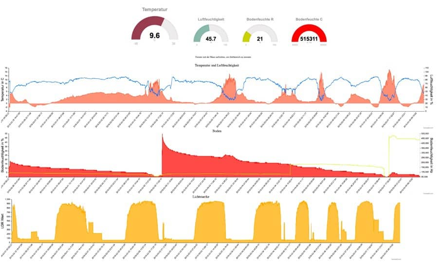 An dieser Stelle kam dann auch wieder das Restwissen meiner früheren Webentwickler- und PHP-Programmiererlaufbahn ins Spiel, denn der GardenBot wird auch eine komplette Wetterstation mit Webinterface in Stile der Netatmo, aber mir ein paar Tricks mehr und ganz ohne fremden Server.