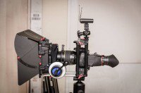 Ich habe mein Kamera-Rig mit einer Matte-Box vervollständigt und ich muss schon sagen, dass man damit richtig gut arbeiten kann. Eigentlich habe ich Matteboxen bei DSLR-Rigs immer für unnötig gehalten, aber sie sorgen tatsächlich für mehr Kontrast, weil weniger Streulicht einfällt. Zudem war die Mattebox (oder das Kompendium) mit 110 Euro ein Schnäppchen. So sieht das Rig nun aus: