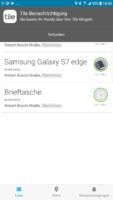 Da man die Tiles einer Aufgabe wie z. B. Geldbörse, Schlüsse etc. zuordnen kann, tippt man nur noch auf das entsprechende Symbol in der App und das Tile meldet sich recht lautstark mit einem Signalton. Umgekehrt geht es ebenso: Hat man ein Tile z. B. am Schlüsselbund und ist auf der Suche nach dem Smartphone, drückt man einfach zweimal die Taste am Tile und das Smartphone macht durch eine Melodie auf sich aufmerksam. Das funktioniert übrigens auch, wenn das Gerät stummgeschalten ist.