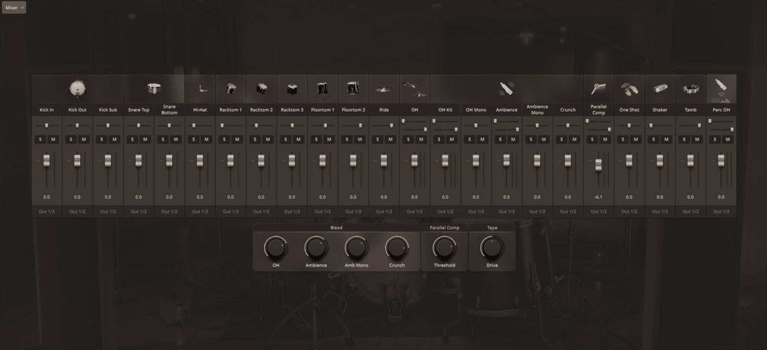 Im Mixer findet man Effekte wie Tape Drive, Hall, EQ und Kompressoren. Ich bevorzuge den Weg über Einzelausgänge und die Soundbearbeitung über die Effekte meiner DAW. Hierzu stehen 16 Stereo-Ausgänge zur Verfügung.
