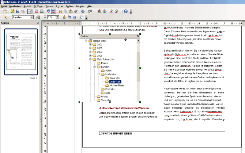 Man kann dabei auf alle Funktionen von Draw, zurückgreifen und damit z. B. Anmerkungen in Form von Sprechblasen etc. realisieren. PDF-Formulare lassen sich allerdings leider auch noch nicht bearbeiten.