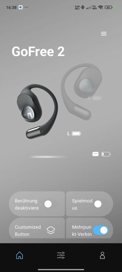 Wie die Runfree Lite2, beherrschen die GoFree 2 Multipoint-Verbindung, Bluetooth 5.3, einen latenzarmen Game-Modus, LDAC und High-Res-Audio und auch die App bietet die gleichen Möglichkeiten zur Klangeinstellung etc.