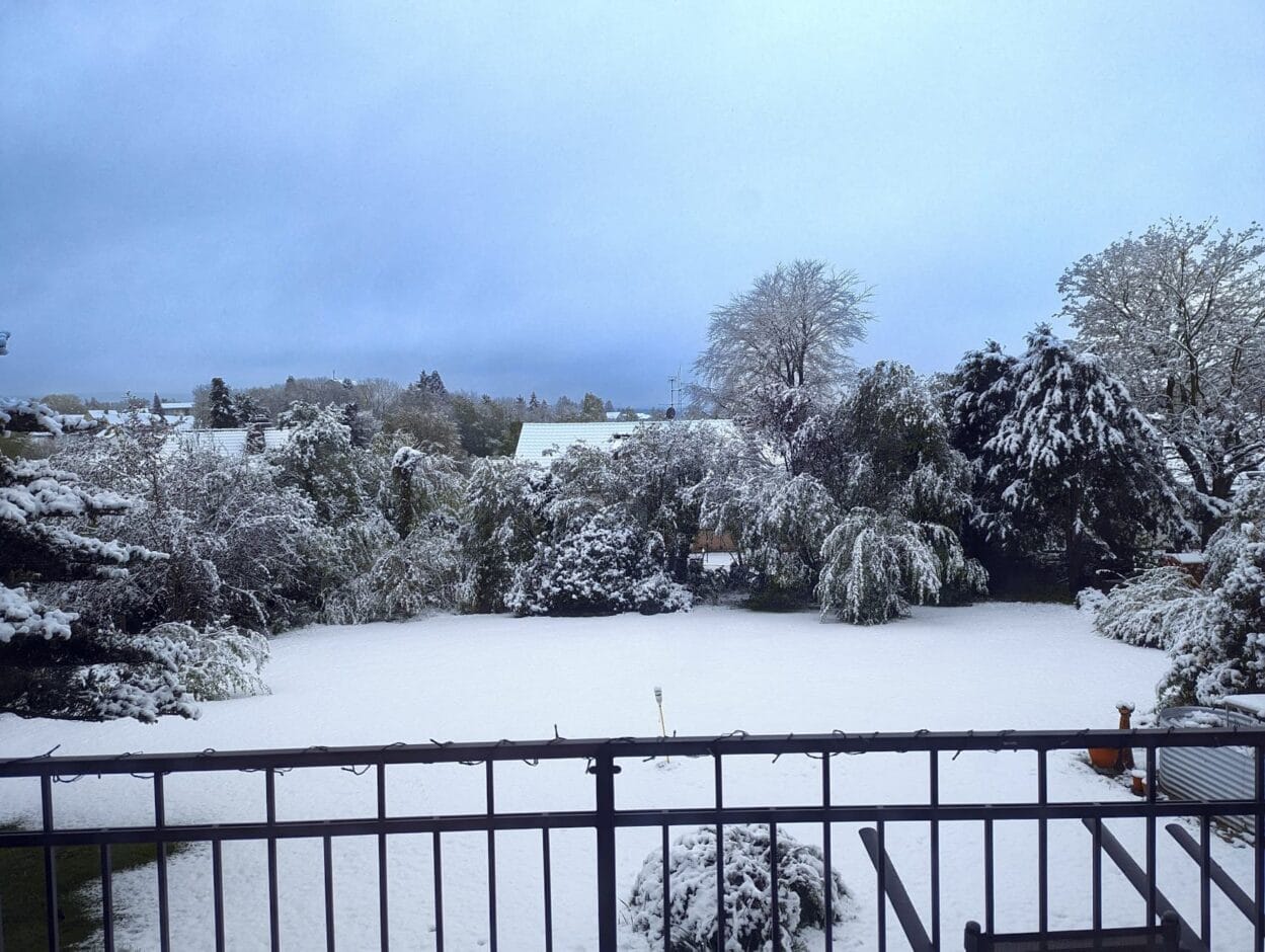 Der April 2024 brachte auch echtes Aprilwetter: Während ich am 12. April bei Top-Wetter und 24 Grad noch mit dem Fahrrad auf dem Kornberg (827m, Fichtelgebirge) war, hatten wir am 21. April fast 15 cm Schnee. Dazwischen gab es von starken Regenfällen, Saharastaub bis zu Sturmböen alles, was das Wetter zu bieten hat.