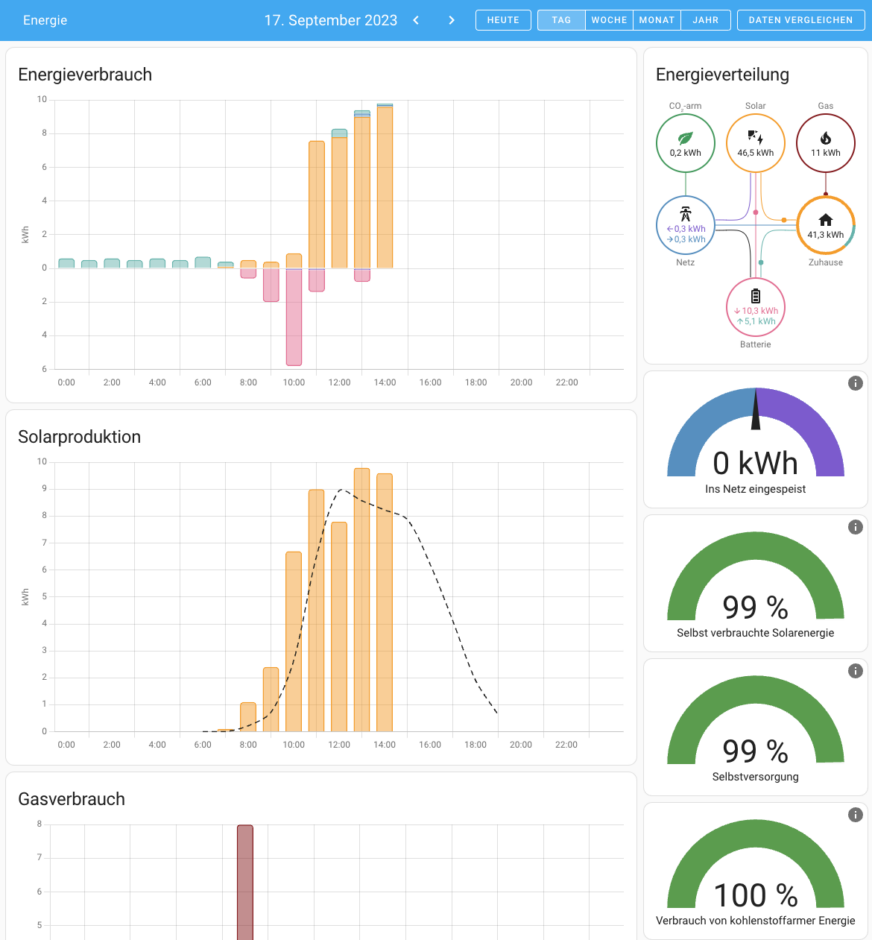 Die Verbrauchs- und Ertragswerte, kommen übrigens direkt vom zusätzlichen Smartmeter, das bei der Installation eingebaut wird.Noch gibt es keine offizielle Integration in Home Assistant, aber daran wird gearbeitet.