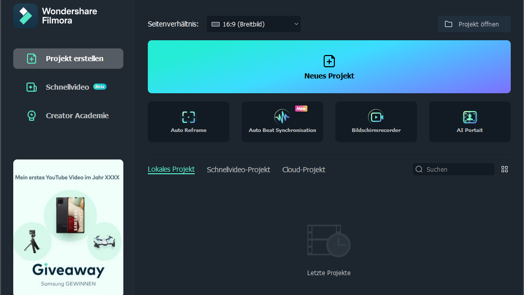 Übrigens kann man mit Filmora auch den Bildschirm aufzeichnen, um etwa YouTube-Tutorials zu erstellen. Die Bildschirmaufzeichnung kann natürlich auch gleich in Filmora bearbeitet werden. Daher bietet sich Filmora 11 auch als Alternative zu bekannten Screenrecording-Lösungen an.