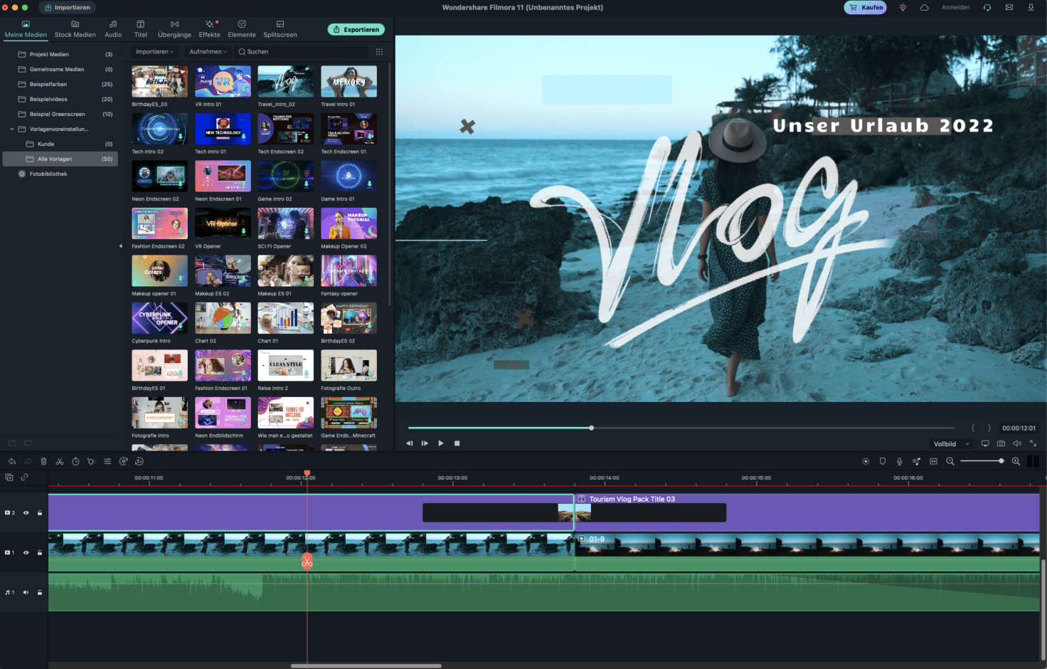 Nicht nur für Einsteiger interessant sind die Projekt-Vorlagen zu verschiedensten Themen. Wählt man etwa eine Vorlage für ein Reisevideo aus, braucht man die darin enthaltenen Platzhalter-Videos nur noch gegen inhaltlich passende, eigene Videos austauschen und schon hat man ein Reisevideo mit einem professionellen Aufbau, das garantiert nicht langweilig ist.