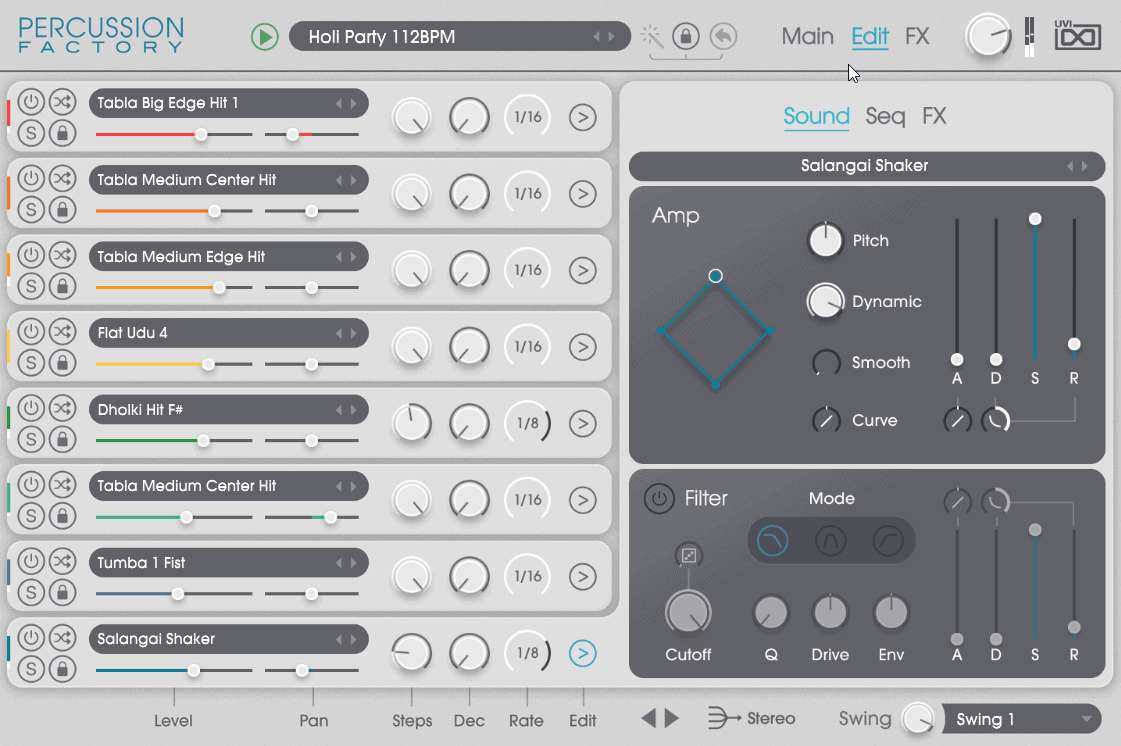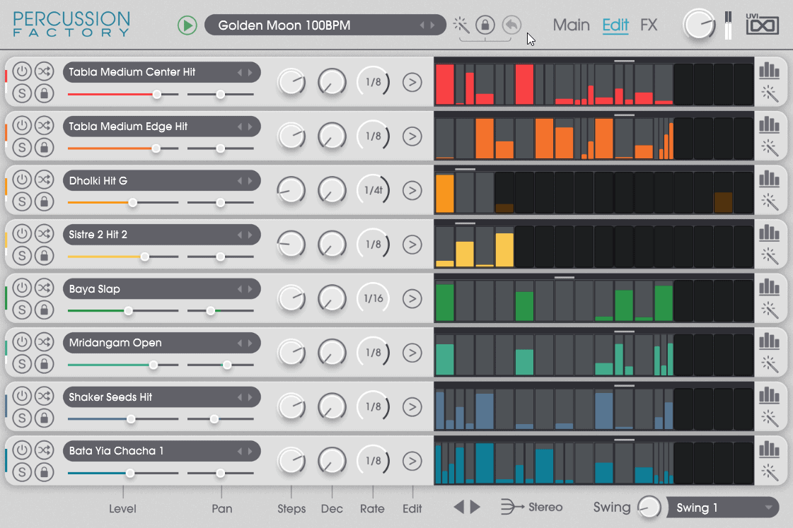 Percussion Factory ist ein neues virtuelles perkussives Instrument für UVI Falcon und die kostenlose UVI Workstation. Es besteht aus 8 Percussions-Slots/Parts, die von einem fortschrittlichen Sequenzer angetrieben werden können.