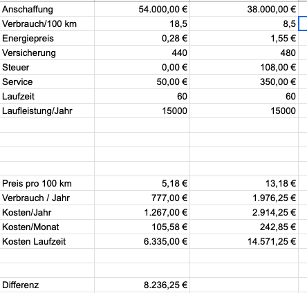 Ich habe mal einen Vergleich zu einem Kia Xceed (das Auto gefiel mir ganz gut) gerechnet und komme bei den Fixkosten, 5 Jahren Haltezeit und 15.000 km Laufleistung pro Jahr auf gut 8.200 Euro Unterschied zugunsten des Tesla. Bei angenommenen 8,5 Litern Super Verbrauch beim Kia, komme ich auf 1.976 Euro für Spritkosten im Vergleich zu 780 Euro für Fahrstrom.
