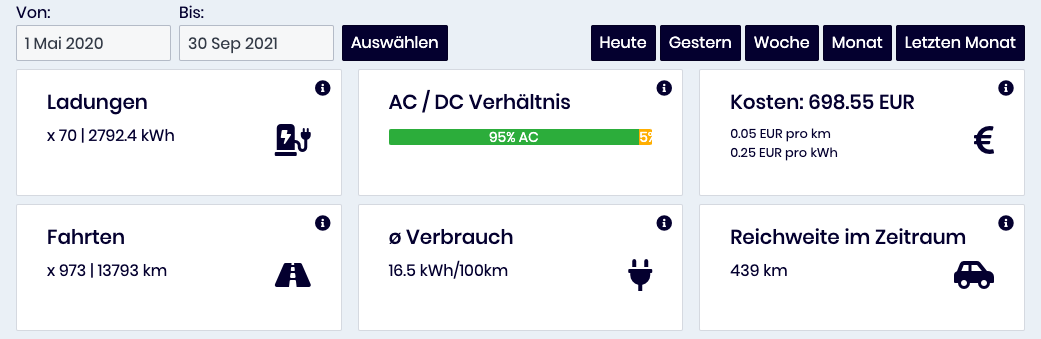 Tronity (Bericht dazu HIER) läuft bei mir hingegen seit dem Mai 2020 und über den gesamten Zeitraum komme ich auf einen Verbrauch von hervorragenden 16,5 kWh/100 km. Der Verbrauch pro Kilometer liegt bei 5 ct.