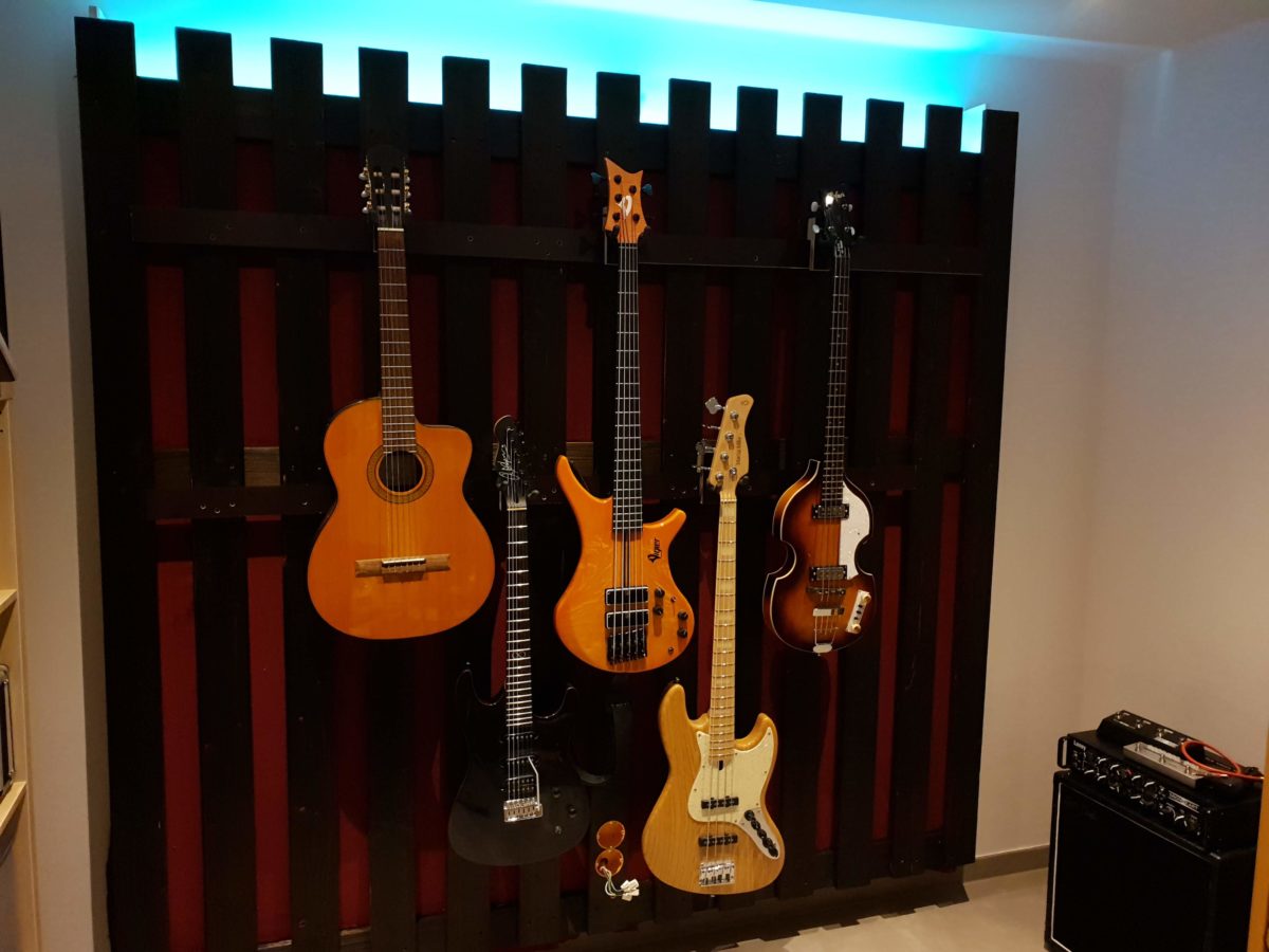 Ich habe mal wieder gebastelt und mir eine Gitarrenwand mit integriertem Absorber für bessere Raumakustik gebaut. Damit das alles schick aussieht, habe ich das Holz der alten japanischen Konservierungsmethode „Shou-Sugi-Ban“ unterzogen. Für die flexible Aufhängung der Gitarren und Bässe, habe ich French Cleat Leisten oder einfach Keilleisten gesägt.