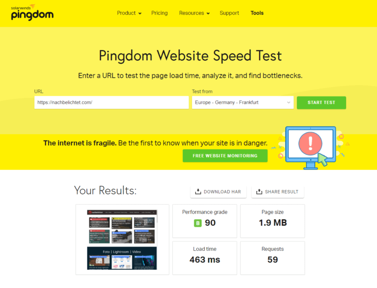 Eine weitere Seite für kostenlose Perfomance-Tests von Webseiten ist https://tools.pingdom.com.