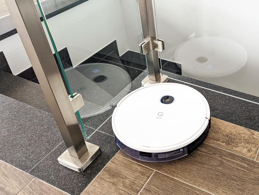 Ausgestattet mit diesen Kartendaten fährt der Yeedi Vac Hybrid dann auch recht zielstrebig und in geordneten Bahnen seine Bereiche ab. Während er anfänglich noch recht ruppig gegen niedrige Hindernisse fährt, welche die Kamera nicht erkennen kann, wird es im Laufe der Zeit immer besser und genauer. Während einige LiDAR-Systeme Probleme mit Glas oder stark reflektierenden Flächen haben, macht dem Yeedi unser Treppengeländer nichts aus. In Bereichen mit geringer Beleuchtung benötigt der Yeedi deutlich länger zur Kartenerstellung und auch bei der späteren Reinigung. Daher sollte man immer für ausreichende Beleuchtung sorgen, solange er unterwegs ist.