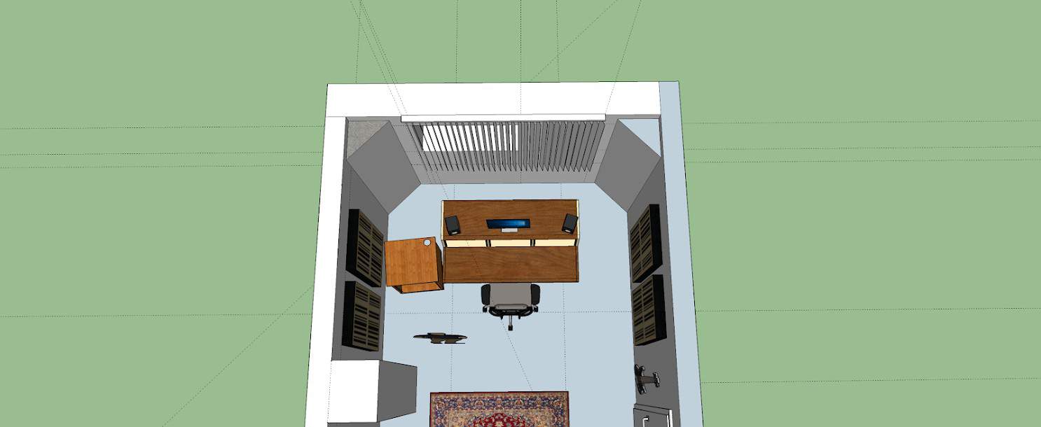 Den Zaor Miza gab es übrigens in der Sketchup-Bibliothek (Warehouse). Ebenso die GIK Acoustic Absorber an der Wand.